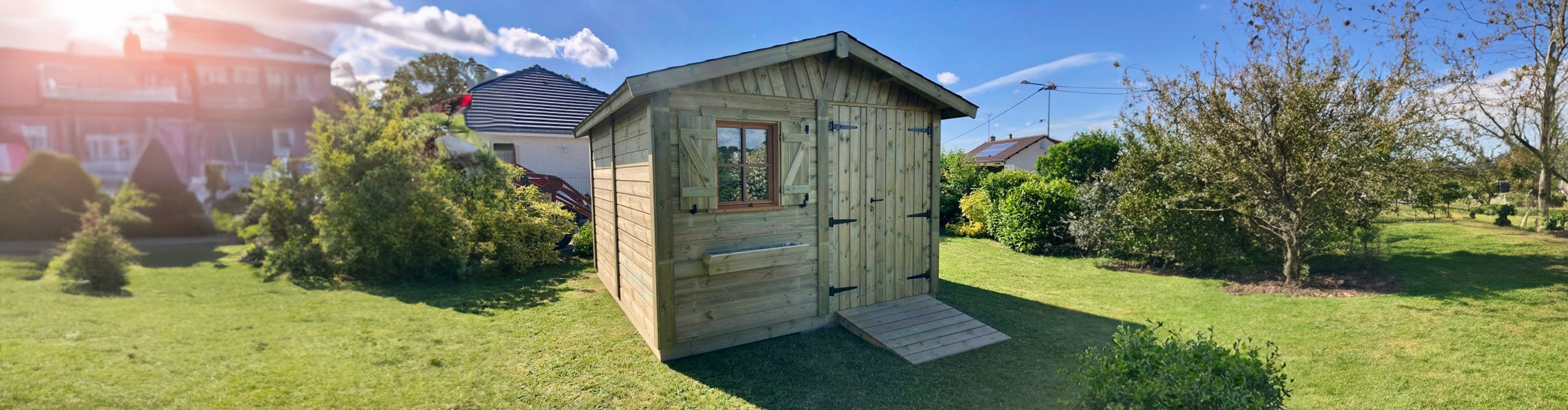 Abri de jardin 1 PAN Ossature Bois : Bardage Sapin Rouge autoclave | 2×2,5m |Panneaux tuiles