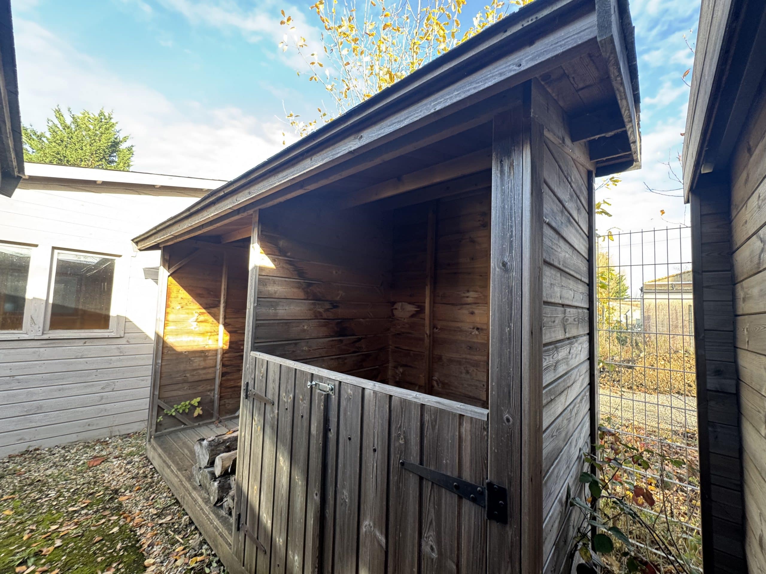 Bûcher indépendant ossature bois – 1,20 m x 2,00 m + abri poubelle annexé