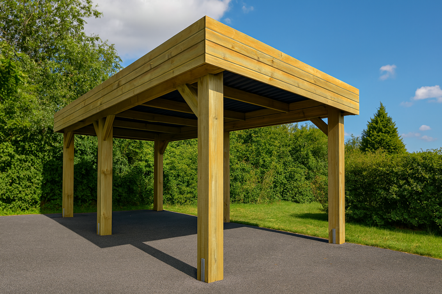 carport |Pin Sylvestre autoclave| 3x6m | Poteaux bois 19x19cm | Bandeaux : Clin 28mm