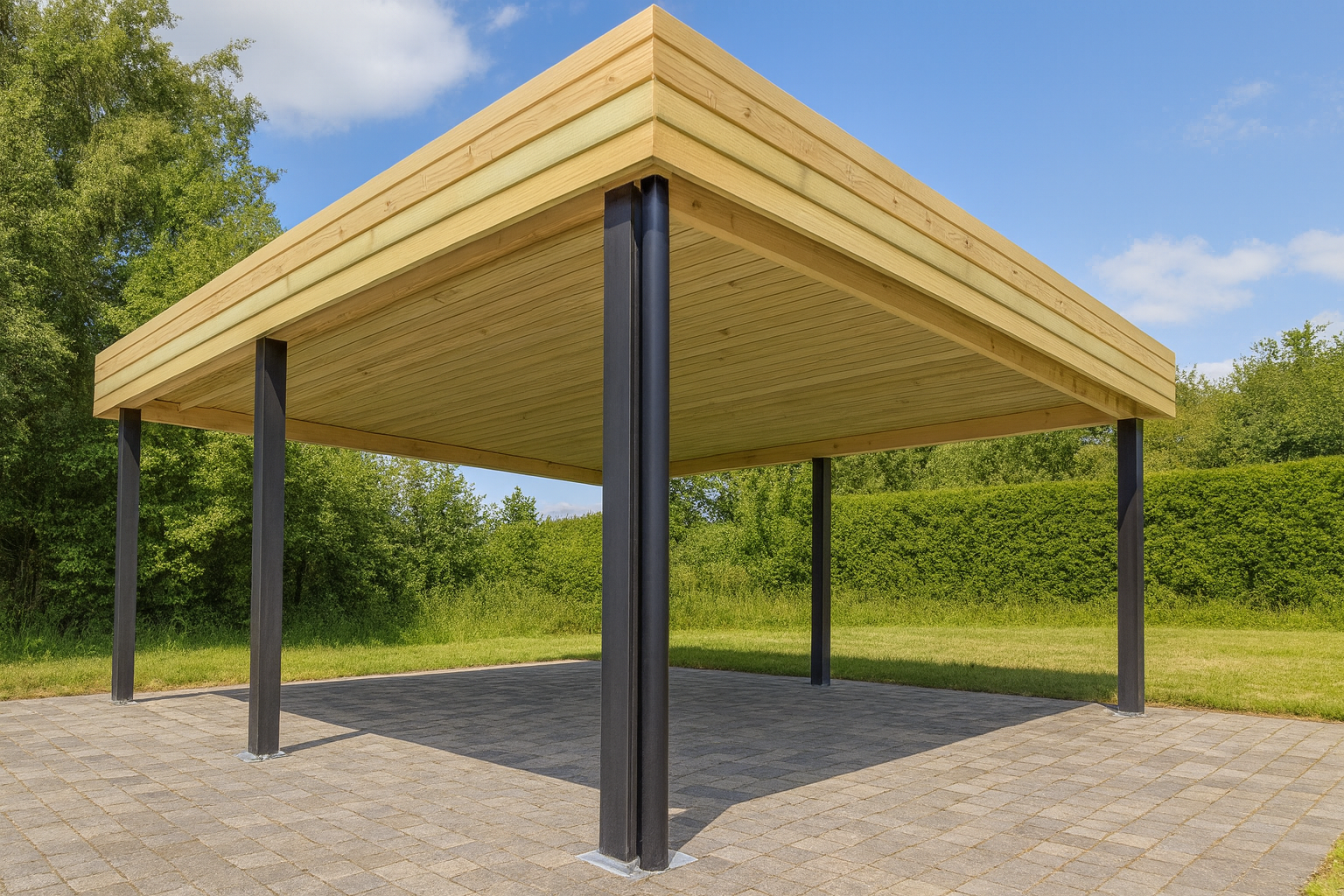 Possibilité de grande portée sans poteau intermédiaire, grâce a des lamélé-collés traité Autoclave.