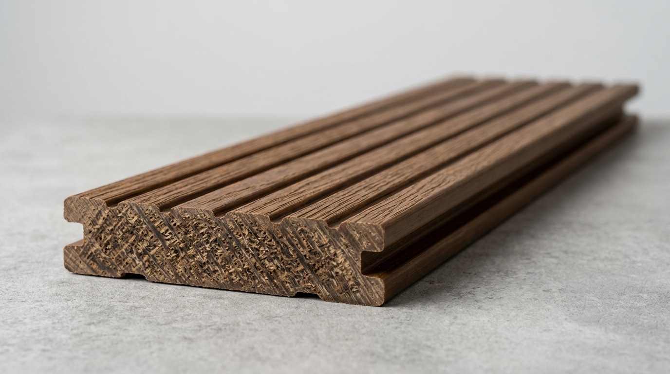 Pour les clients qui veulent absolument du composite (copropriété imposant un matériau sans entretien, location saisonnière), nous proposons une seule référence soigneusement sélectionnée : le composite bambou à faible dilatation longitudinale.