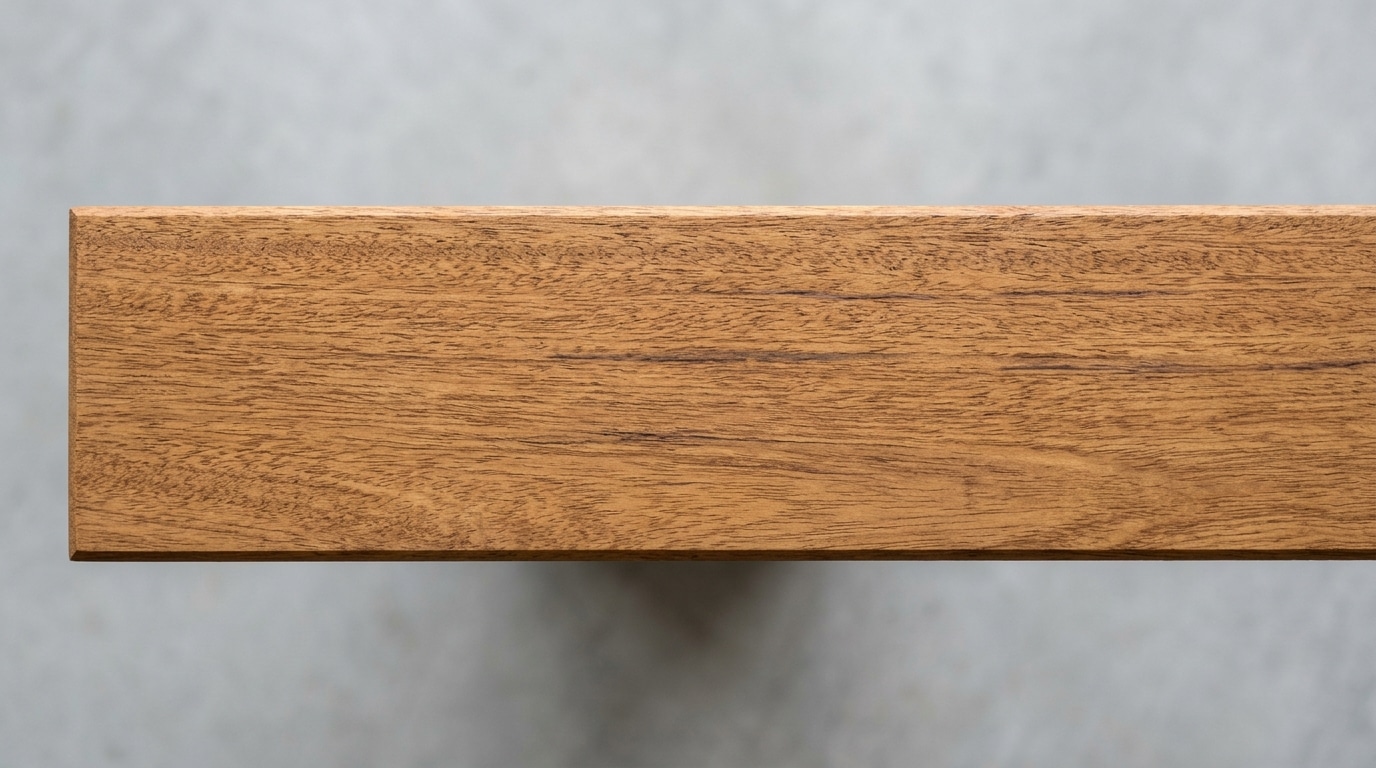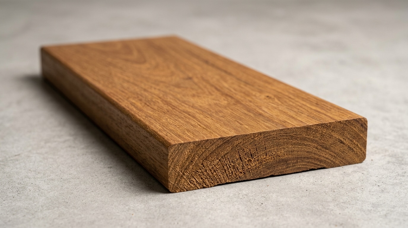 Le Cumaru est considéré par les poseurs comme le meilleur rapport qualité/prix sur le segment exotique haut de gamme. Très dense (~1 080 kg/m³, coule dans l’eau), teinte marron caramel, classe 4 naturelle.