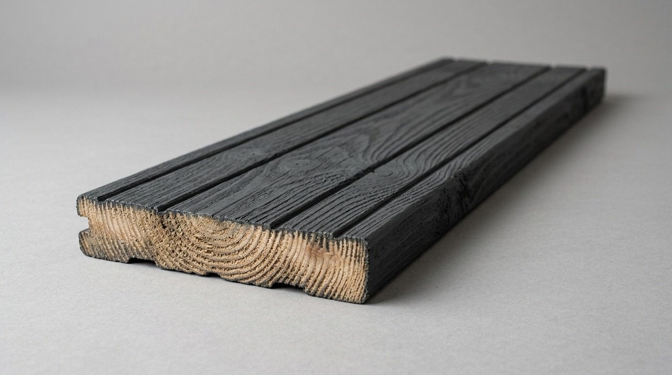 Pin sylvestre teinté en gris anthracite d’origine. Imite la patine naturelle du bois vieilli sans attendre 12 mois d’exposition. Très tendance en design contemporain.
